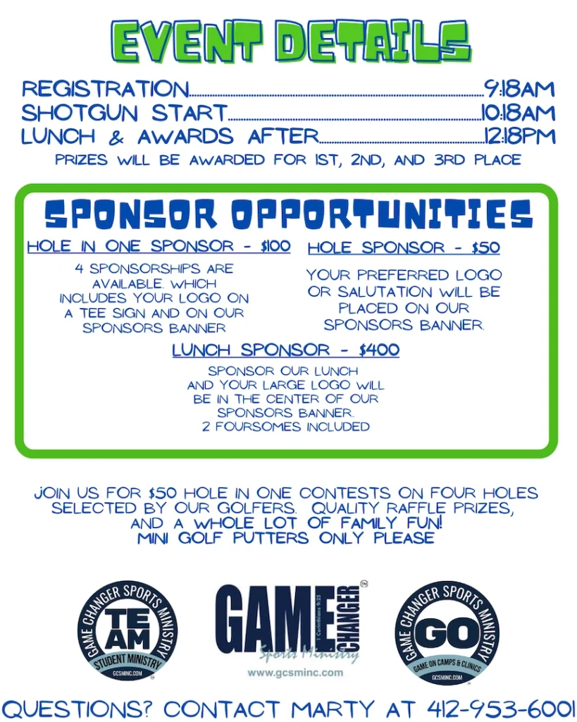 4 ACE SPONSORS ARE AVAILABLE. WHICH INCLUDES YOUR LOGO ON A TEE SIGN AND ON OUR SPONSORS BANNER