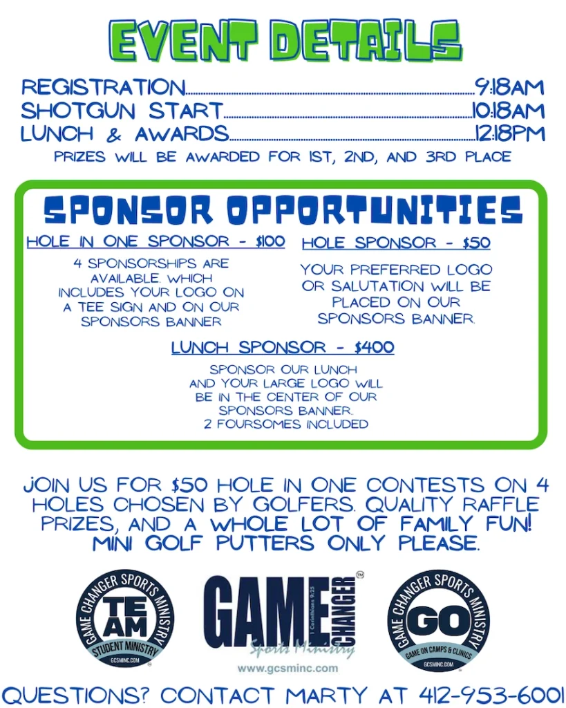 4 ACE SPONSORS ARE AVAILABLE. WHICH INCLUDES YOUR LOGO ON A TEE SIGN AND ON OUR SPONSORS BANNER