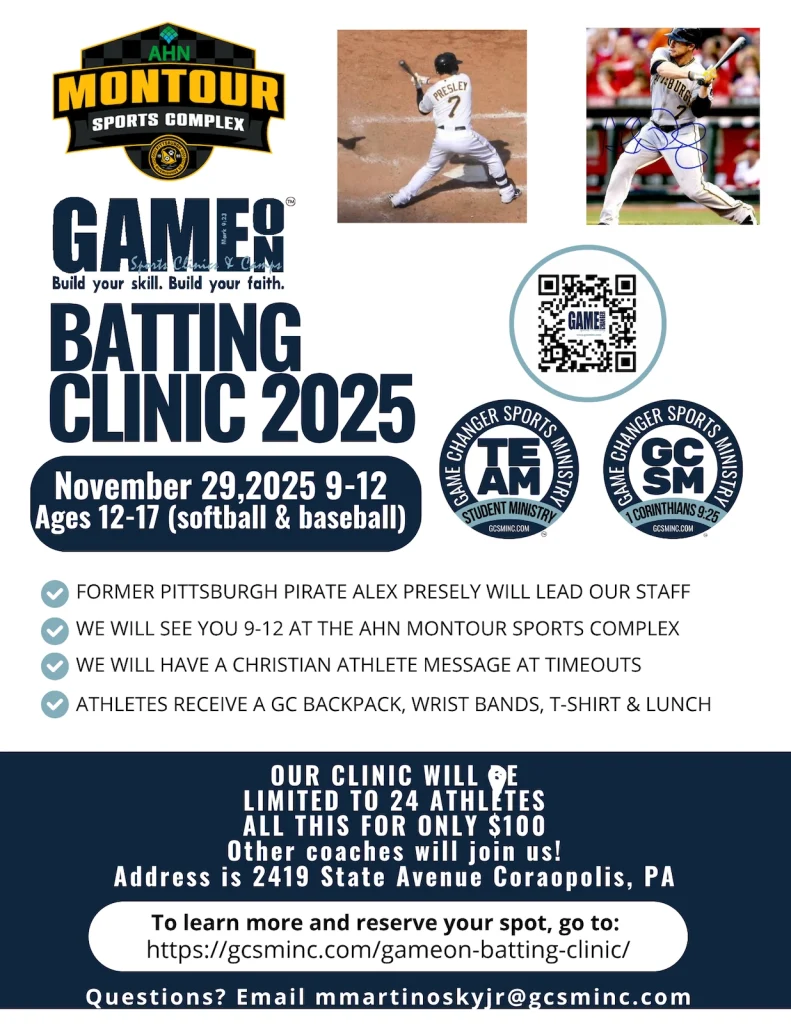 Sign up here for the 2025 GAMEON batting Clinic scheduled for 11/29